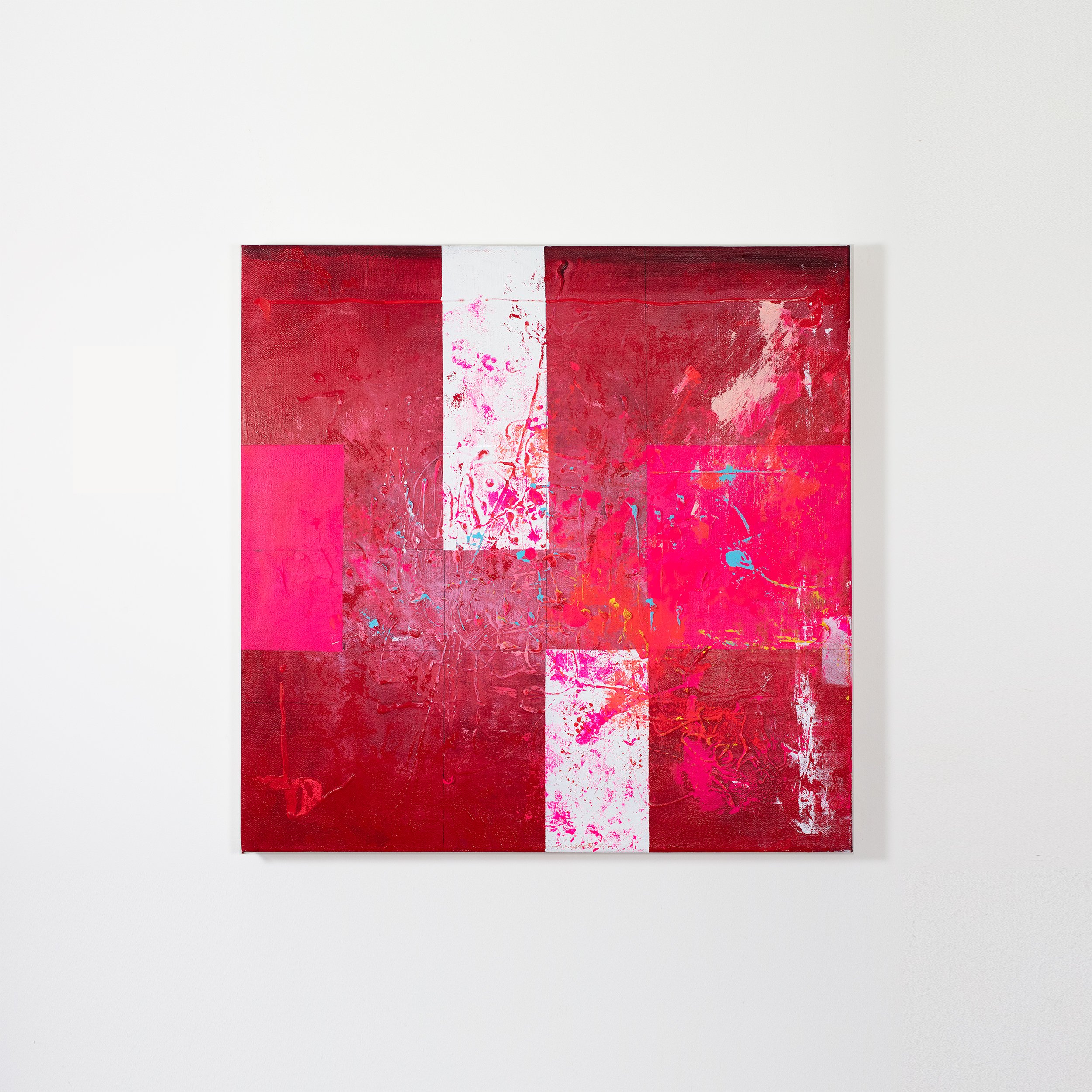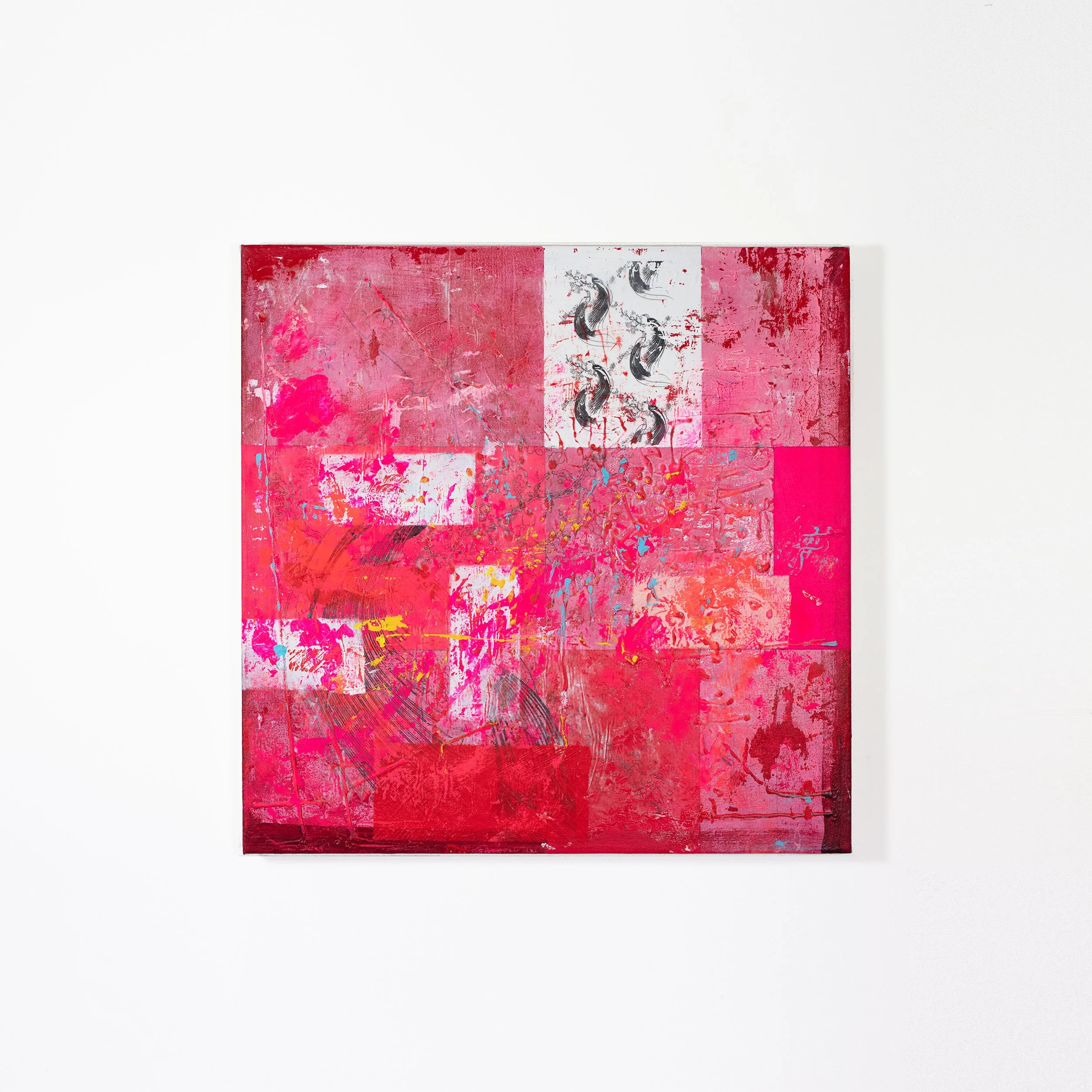 Acrylic, print transfer and pen on linen
